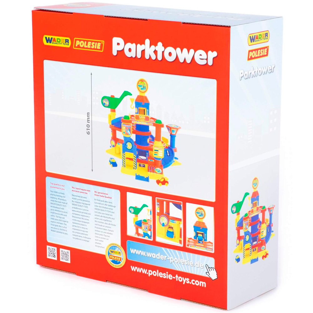 Четырехуровневый паркинг с двумя машинками - это желанный подарок для мальчиков и девочек, который позволит отлично провести время сразу нескольким детям. Тут есть лифт, заправка, автосервис и автомойка, кран, вертолетная площадка, все элементы приводятся в движение вращением соответствующих ручек. Машинки будут плавно съезжать сверху вниз, если поставить их на наклонный пандус на верхнем ярусе. Все элементы набора изготовлены из качественных безопасных материалов, не имеют острых краев и зазубрин.