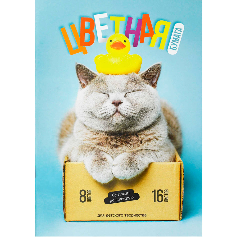 Бумага цветная 16 л 8 цвет. Кот с уткой 73168