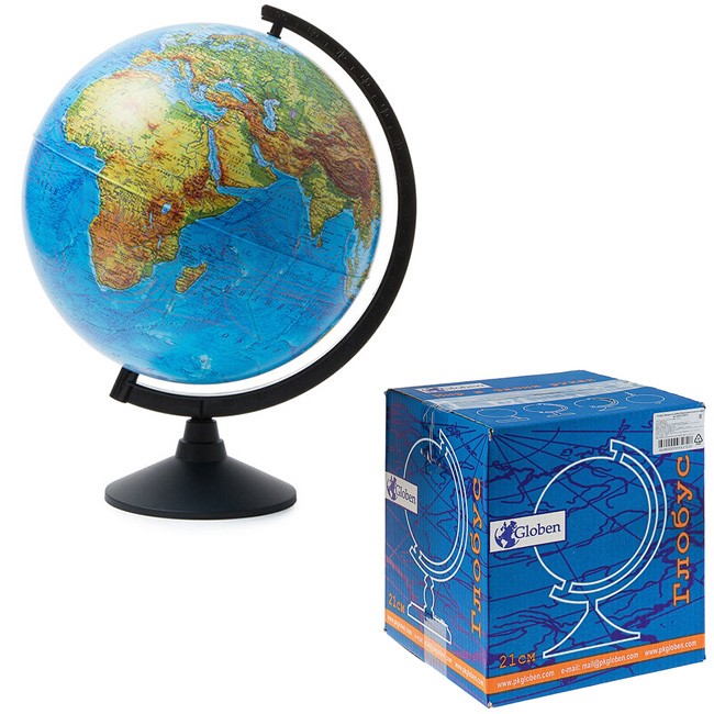 Макет глобуса Земли "Классик" от компании GLOBEN с физической картой мира - эффектное и практичное дополнение к ученическому рабочему месту. Глобус отличает качественная полиграфия, приятная цветовая гамма и детальная прорисовка рельефов. Макет Земного шара диаметром в 320 мм, традиционно наклоненный под углом 70° и закрепленный на устойчивой пластиковой подставке, впишется в любой уголок интерьера.