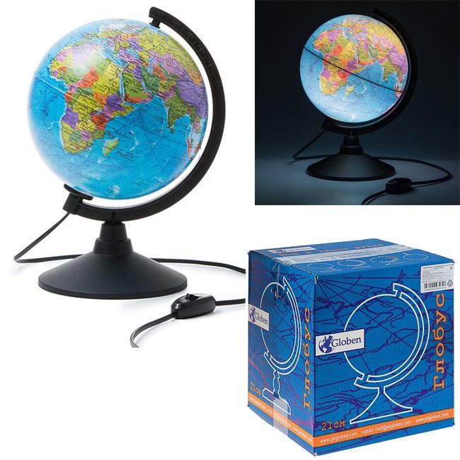 Комплектация: глобус с сетевым проводом, подставкаМатериал: пластик, металл