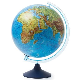 Макет Земного шара, традиционно наклоненный под углом 70° и закрепленный на устойчивой пластиковой подставке, впишется в любой уголок интерьера.