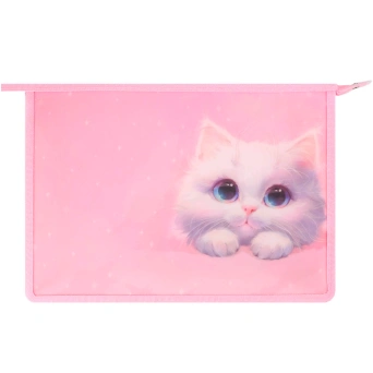 Папка для тетрадей на молнии 1 отделение Белый кот 72353