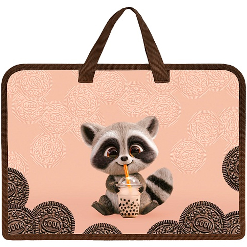 Папка для тетрадей на молнии 1 отделение Вот енот с ручками 094458