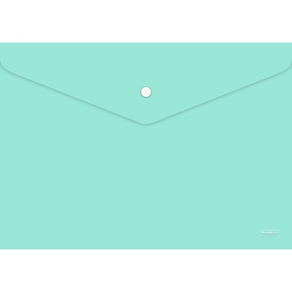 Папка-конверт из коллекции NEWtone в цвете пастель "Мята" предназначена для хранения и переноски документов. Изготовлена из качественного полипропилена, надежно закрывается на кнопку, благодаря чему документы внутри будут защищены от внешних воздействий, вмещает в себя до 100 листов формата А4.