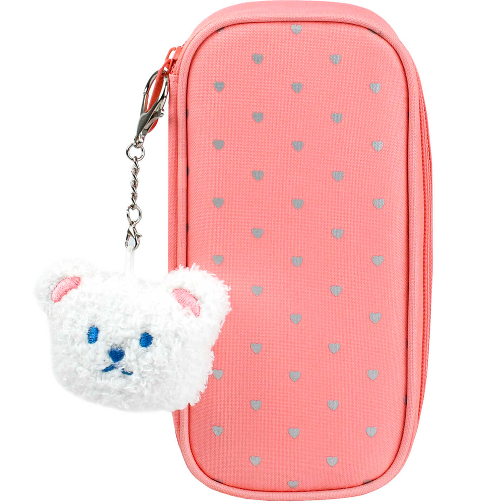 Пенал на молнии Мишка с сердечками 9х20х4,5 см 72206