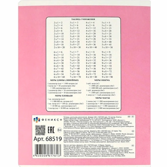 - на задней стороне — таблица умножения и метрическая система мер;