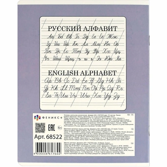 - на задней стороне — русский и английский алфавит, письменные буквы;