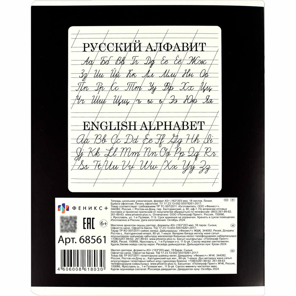 - на задней стороне — русский и английский алфавит, письменные буквы;