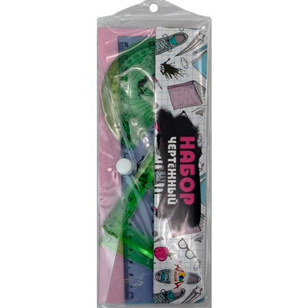 Комплектация: линейка - 1 шт., транспортир - 1 шт., треугольник - 2 шт.