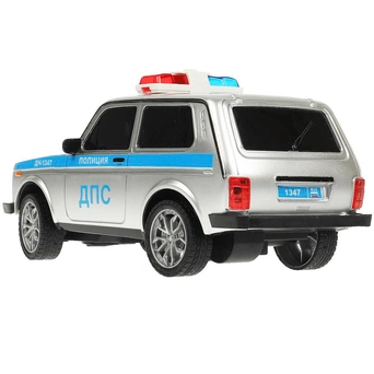 Яркая модель представляет собой копию полицейского автомобиля.