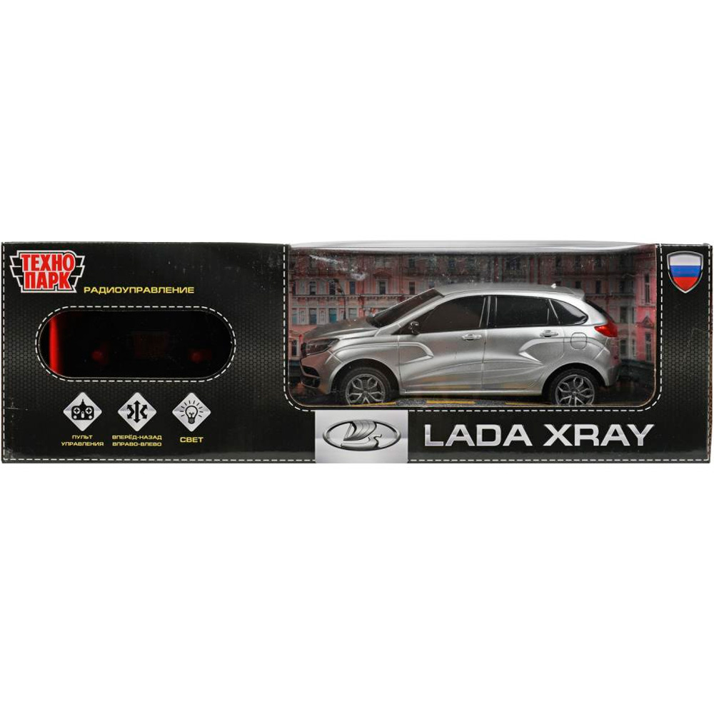 Металлическая модель представляет собой копию автомобиля LADA -XRAY на дистанционном управлении.