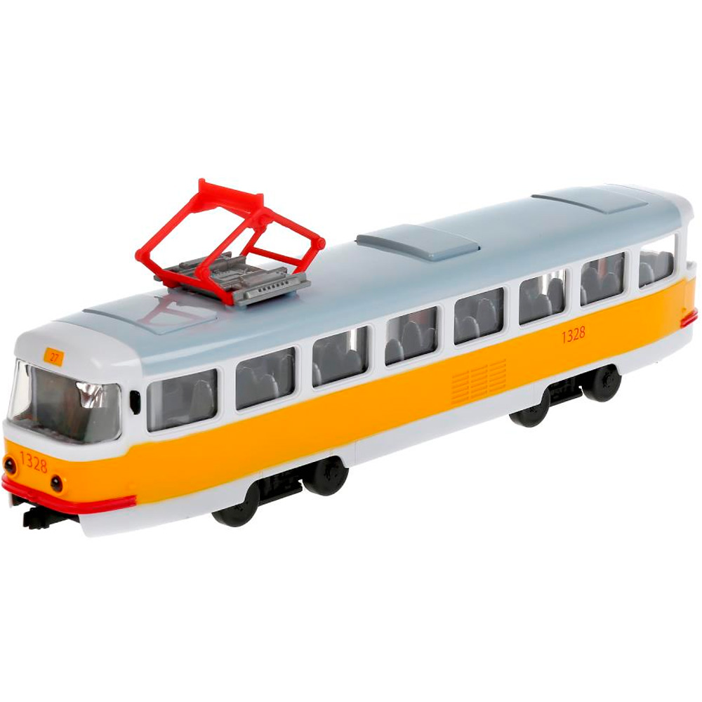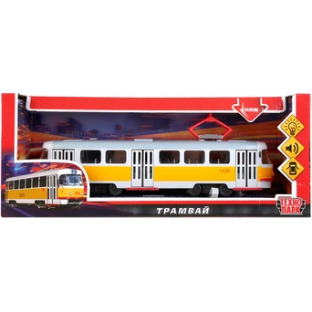 Любителям городской техники понравится эта оригинальная модель вагона трамвая. Классический вагон от бренда "Технопарк" оценят любители наземного транспорта. Такая модель станет прекрасным подарком юному коллекционеру. Прозрачные окна позволяют разглядеть внутри детально проработанный салон. Трамвай оснащен инерционным механизмом и световыми и звуковыми эффектами (при нажатии на корпус раздастся звук звонка трамвая и голос вагоновожатого со словами: «Осторожно, двери закрываются. Следующая остановка улица Парковая» и «Уступайте места пассажирам с детьми, бабушкам и дедушкам»), что делает игры с ним гораздо увлекательнее. С таким трамваем интересно будет играть с друзьями. Он разнообразит "городские" игровые сюжеты.