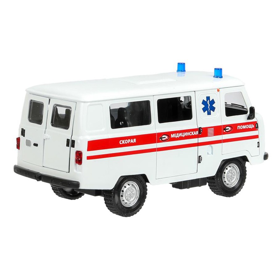 Модель представляет собой копию автомобиля скорой помощи.
