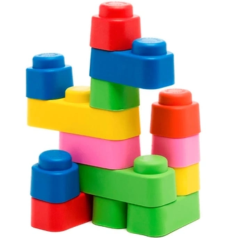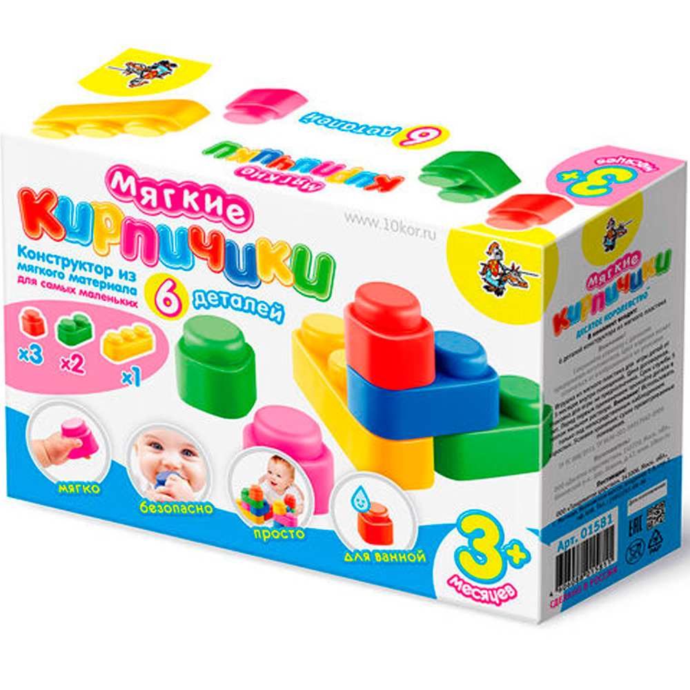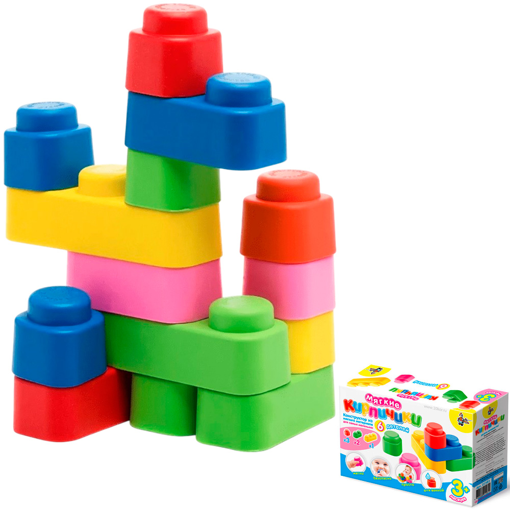 Может показаться, что шесть элементов - как то маловато будет для конструктора. Но не надо забывать о том, что это конструктор для самых маленьких и задача построить что-то серьезное перед ним не ставится. А вот развивать хватательные движения, уметь удерживать предмет в руках, учиться соединять и разъединять элементы, соотносить их относительно друг друга-эти задачи наши «Мягкие кирпичики» решают блестяще и шести элементов для этого вполне достаточно. При этом размер, вес и особенно материал элементов делает конструктор максимально безопасным для малыша.