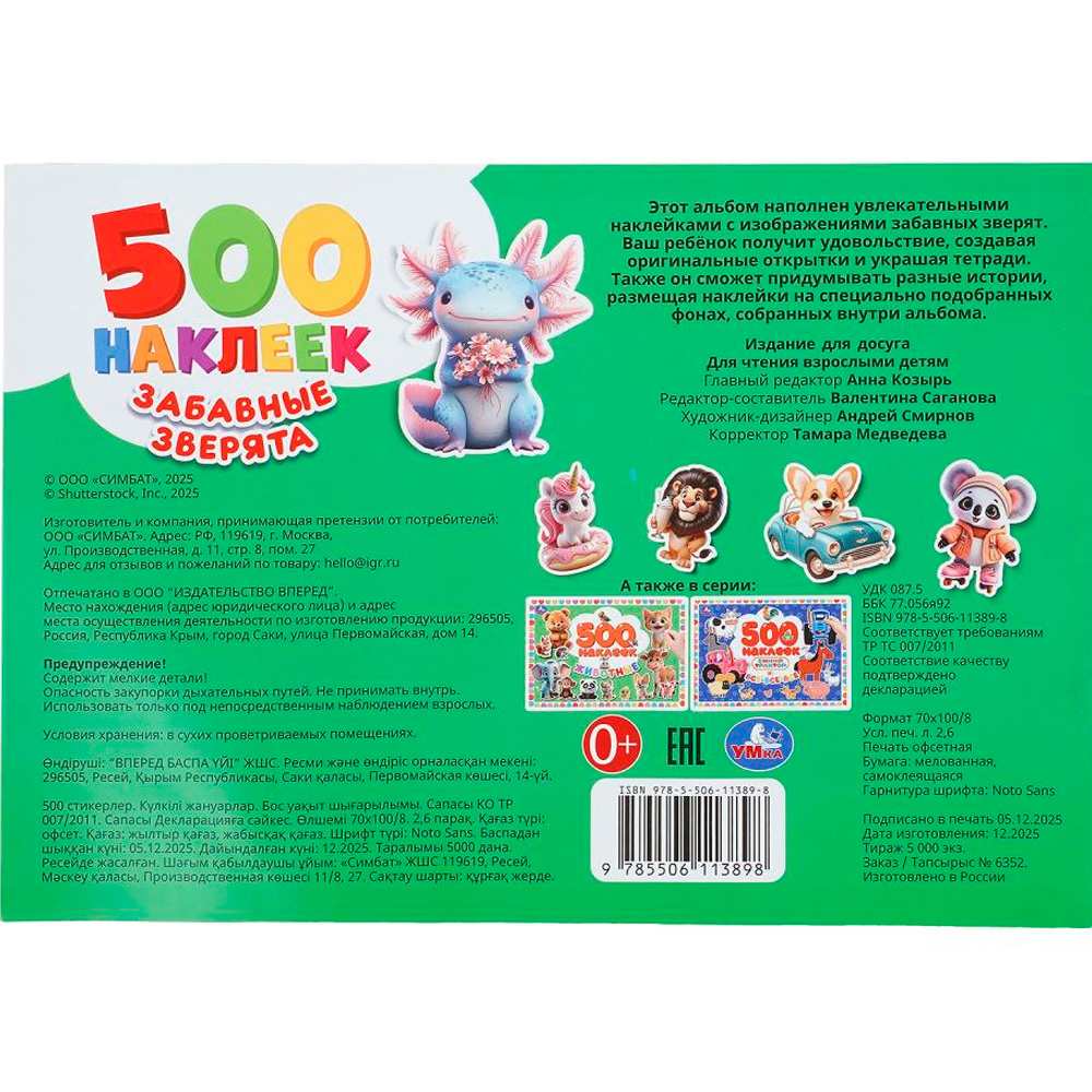 Наклейки Умка 9785506113898 Забавные зверята. 500 наклеек