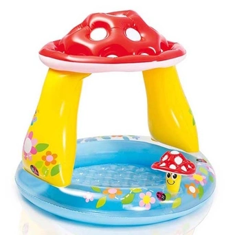 Оригинальный дизайн игрового комплекса-бассейна Гриб доставит массу удовольствия!Особенность этой модели в наличии тента, который защищает от яркого солнца, а также дополнительных надувных изделий для игр в воде. Глубина бассейна всего 15 см.