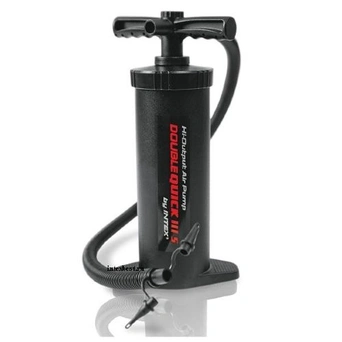 С помощью этого насоса можно легко надувать и сдувать любые надувные изделия, игрушки, мячи, кровати, матрасы, лодки и т.п. Насос безопасен в использовании, влагозащищен, можно пользоваться как внутри, так и вне помещений. Насос подходит ко всем надувным изделиям марки "Intex". Насос ручной имеет систему двойного действия, то есть он накачивает изделие как при поступательном, так и при возвратном движении поршня. В комплекте с насосом идут гибкий шланг и 3 насадки для всех видов надувных изделий.