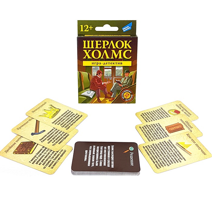 "Шерлок Холмс" - это детективная игра, которая помогает в развитии дедукции, логики и сообразительности. Задача игроков - задавать наводящие вопросы ведущему и как можно более точно узнать причины происходящего. В такой игре каждый сможет представить себя в роли детектива и взяться за расследование сложных и запутанных дел!