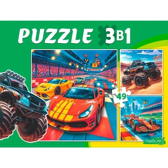 Пазл 3 в 1 Дрифт машинки 3 картинки по 49 эл. П-3457