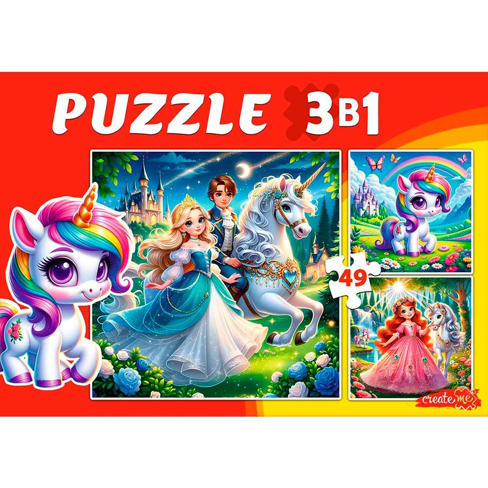 Пазл 3 в 1 Принцессы и единороги 3 картинки по 49 эл. П-3464