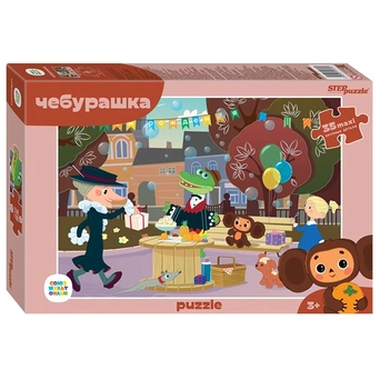 Пазл «Чебурашка» основан на сюжете известного доброго детского мультфильма компании «Союзмультфильм». Пазл «Чебурашка» состоит из 24 больших деталей (размер одной детали – 10х9 см). Крупные детали малышам удобно держать и складывать в изображение. Размер картинки – 68х48 см. Данный пазл подойдет деткам от 3 лет.