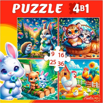 Пазл 4 в 1 Добрые зверята 9,16, 25, 36 эл. П-3418