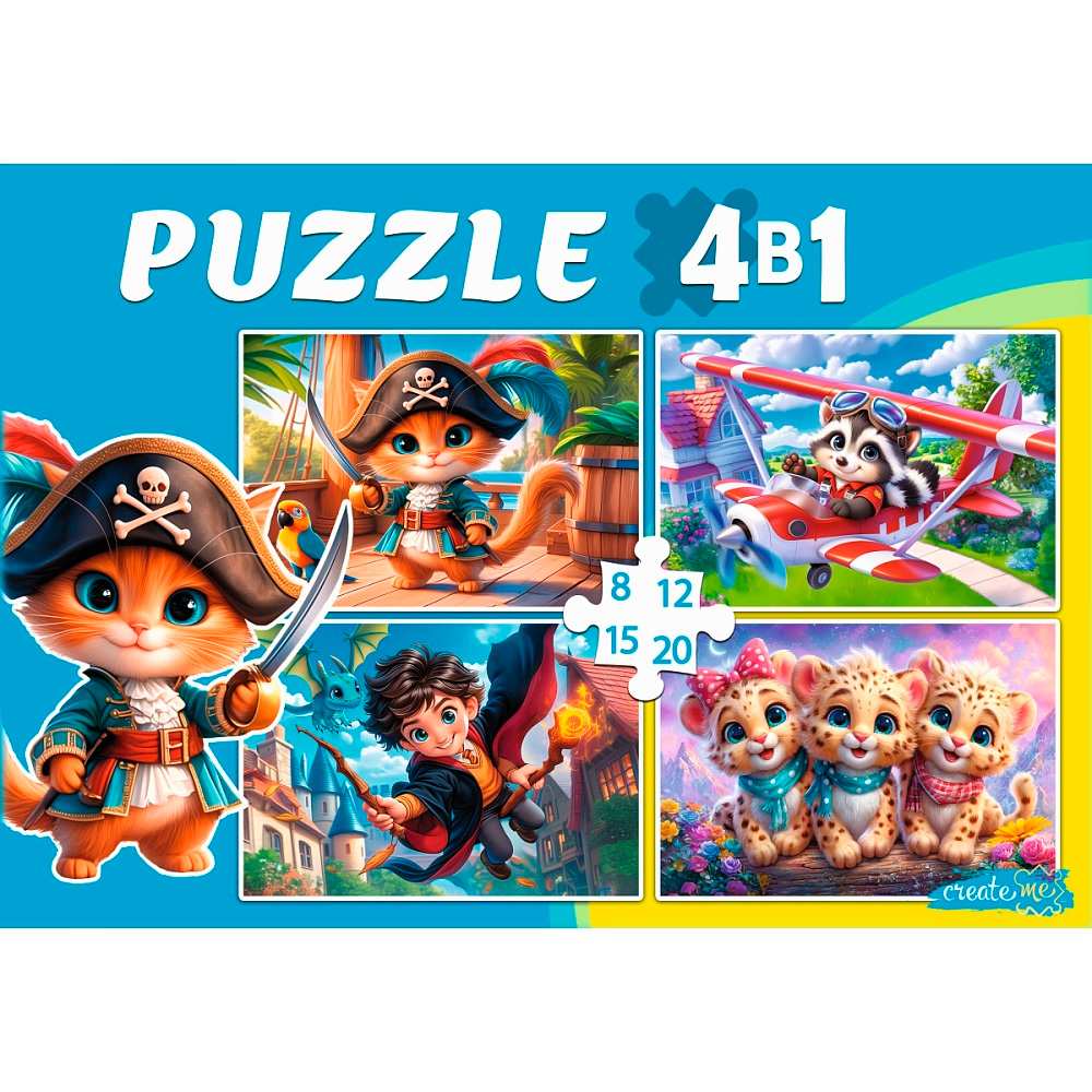 Пазл 4 в 1 Веселые приключения 8, 12, 15, 20 эл. П-3411