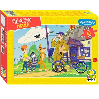 Пазл с героями «Простоквашино» на 60 элементов станет отличным первым опытом сборки для ребёнка.