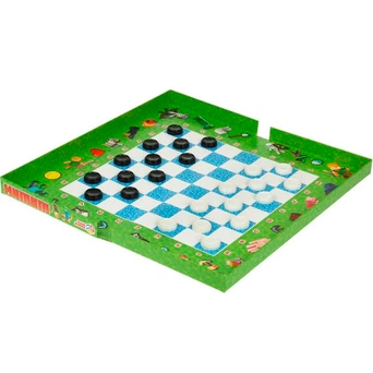 Комплектация: игровая доска - 1 шт, 12 белых шашек, 12 чёрных шашек