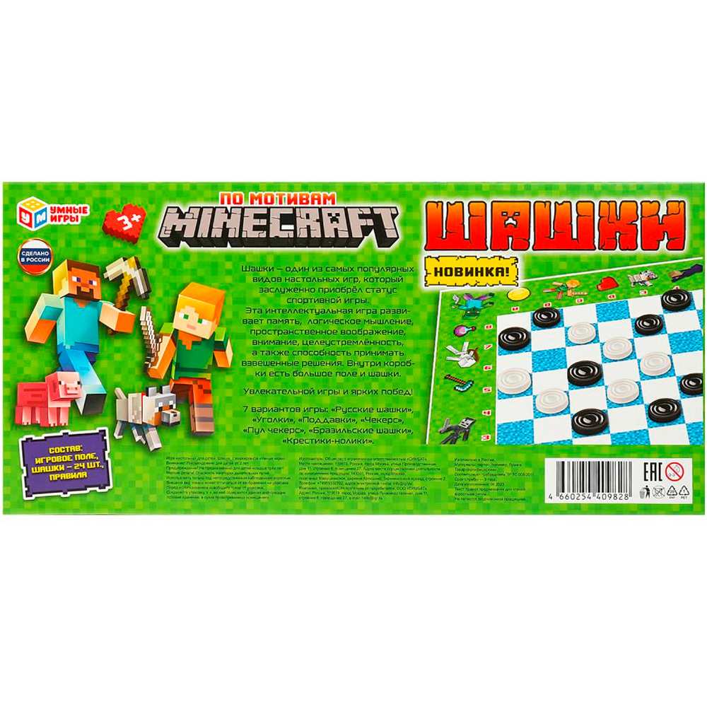 Настольная игра шашки «По мотивам Minecraft» ТМ «Умные игры» увлекательный и полезный досуг для ребёнка