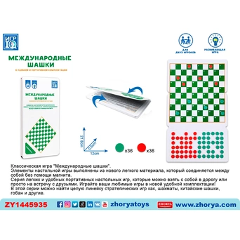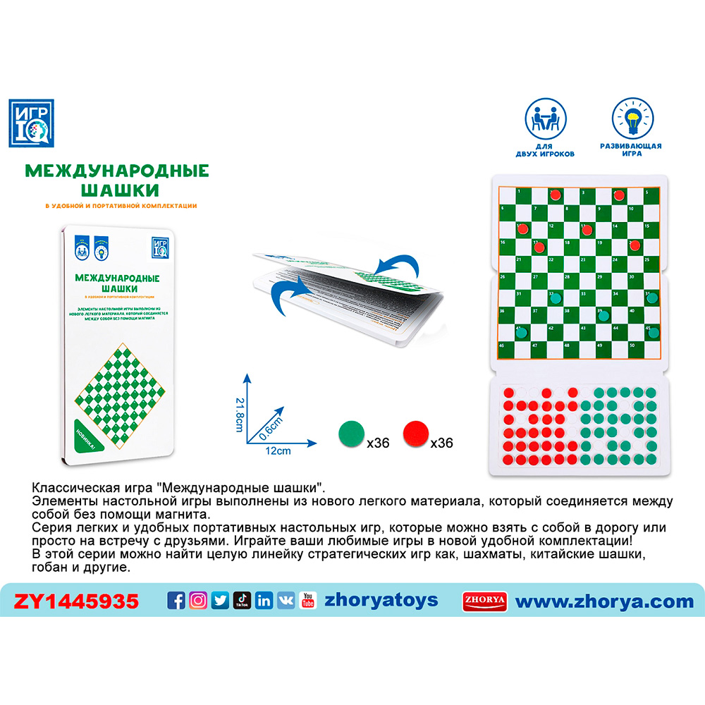Комплектация: игровое поле - 1 шт, шашки - 72 шт