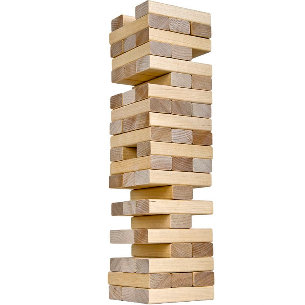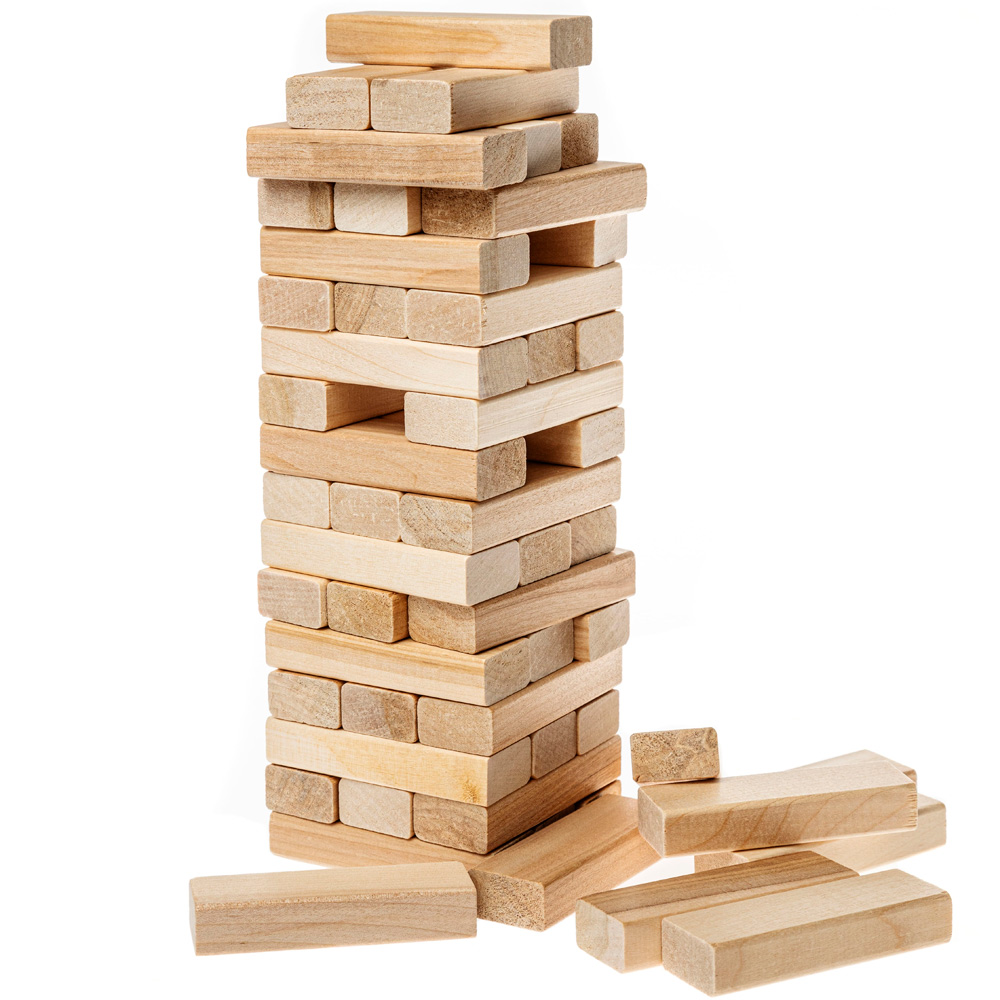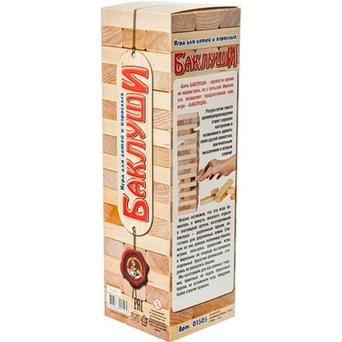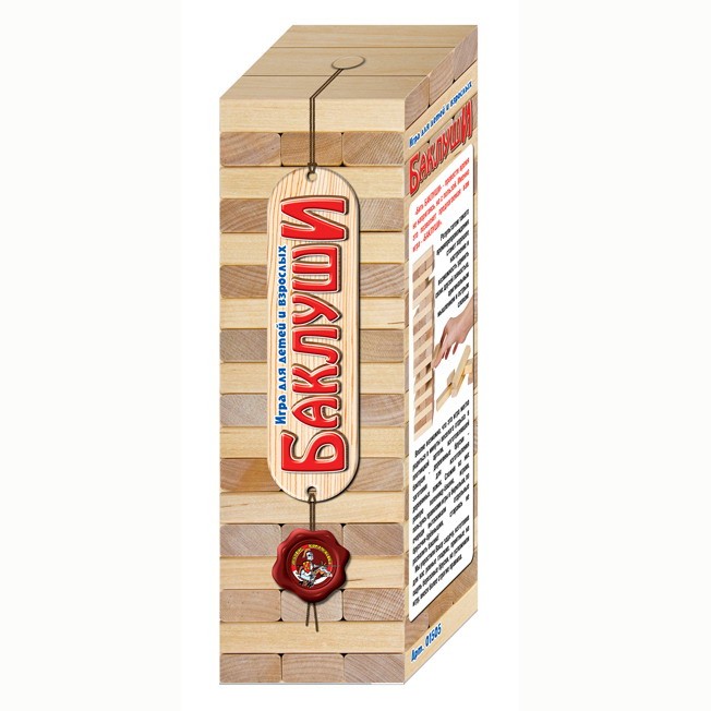 Нет сомнений, что эта игра могла родиться в минуты веселого отдыха в плотницкой артели, изготовлявшей баклуши - деревянные бруски - заготовки для изготовления деревянных ложек. Сложив из них ровную поленницу-башню, игроки, пользуясь правилами игры в бирюльки, по очереди вытаскивали отдельные брусочки-брёвнышки, стараясь не развалить башню! Мы упростили Вашу задачу, изготовив для вас ровные, гладкие, приятные на ощупь березовые бруски, но усложнили игру, внеся более строгие правила.