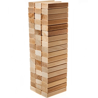 Из брусков надо сложить ровную башню, используя специальный уголок, входящий в комплект игры. В каждом ряду должно быть три бруска, каждый последующий ряд складывается в направлении, поперечном предыдущему. Таких рядов должно получиться 18! Затем надо аккуратно перевернуть башню. Уголок поможет башне не упасть и сохранить свою форму. На столе окажется высокая восемнадцати этажная неприступная башня.