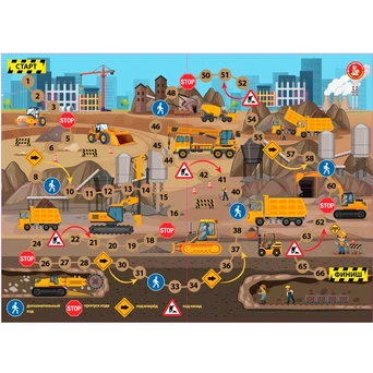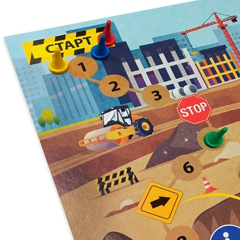Настольная игра-ходилка «На стройке» – это игра-путешествие по огромной строительной площадке.
