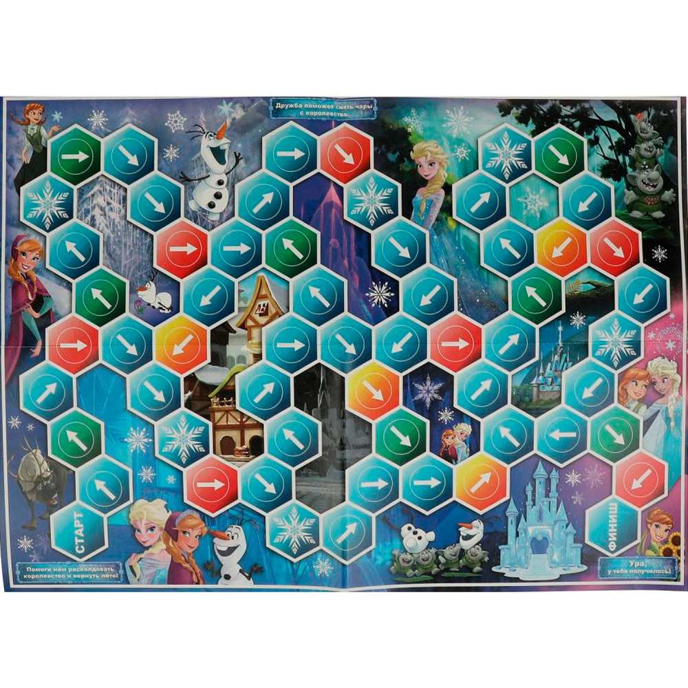 Комплектация: игровое поле (42 х 58 см), игральный кубик, 4 цветные фишки