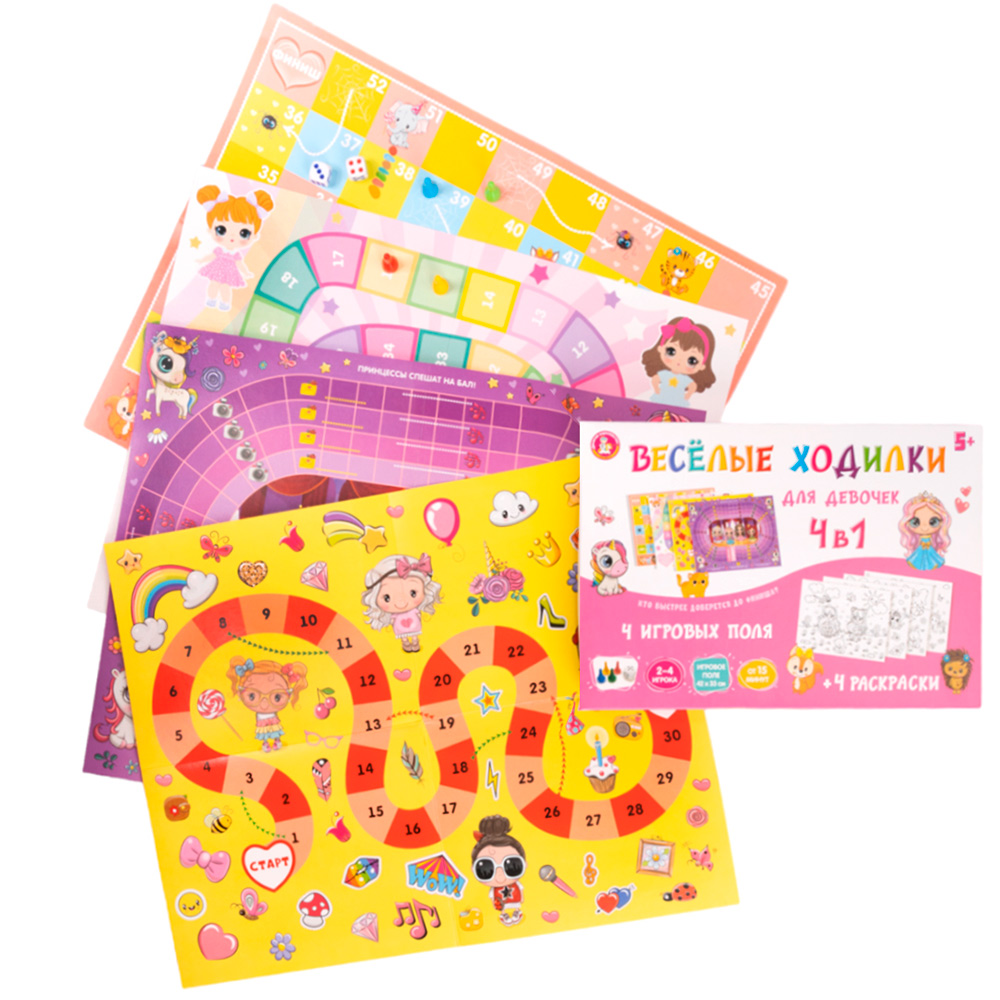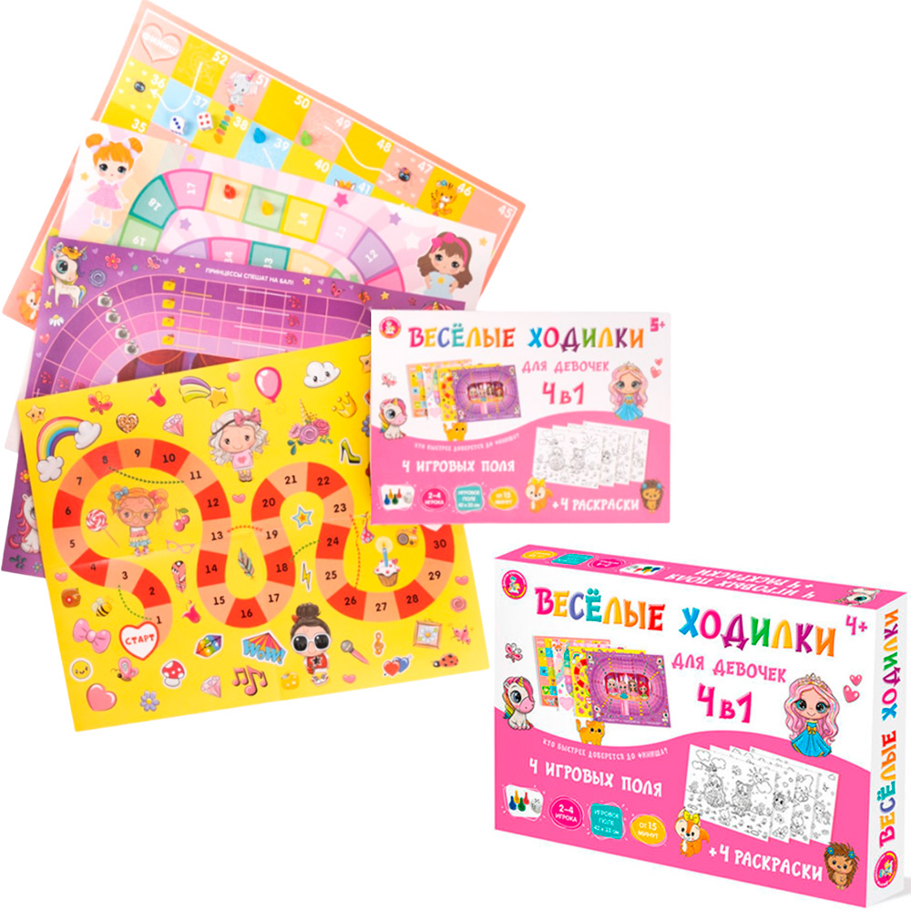 Набор игр «Веселые ходилки» 4 в 1 – отличный вариант для интересного и веселого досуга.