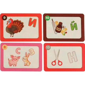 5 вариантов игры в буклете: "Найди пару", "Что пропало?", "Беспорядок", "карточное лото", "Кто больше?"