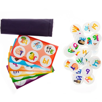 Изучайте вместе с малышом алфавит в игровой и легкой форме, сопоставляя фишки с картинками на карточках. Лото «Азбука» предназначена для детей от 3 лет. Участникам раздаются игровые поля, на которых содержится 6 картинок с буквами и предметами, название которых начинается на эту букву. Задача заключается правильно подобрать фишки к картинкам на карточках. Ведущий складывает все фишки в мешочек, а затем вытаскивает по одной и называет букву, изображённую на ней. Игроки ищут на своих карточках объекты, названия которых начинаются с этой буквы. Тот, кто быстрее всех обнаружил такую картинку на своей карточке, забирает себе фишку и закрывает ею нужную картинку. Лото «Азбука» развивает память, усидчивость, внимательность, аккуратность и тренирует мелкую моторику рук.