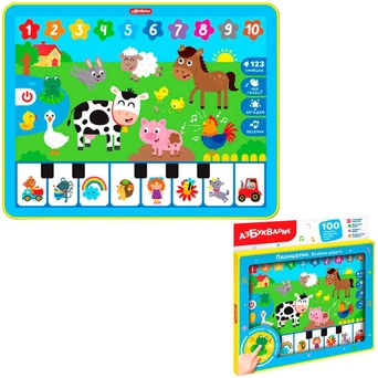 Красочное и функциональное изделие содержит кнопки, нажав на которые можно услышать звуки, мелодии, информацию.