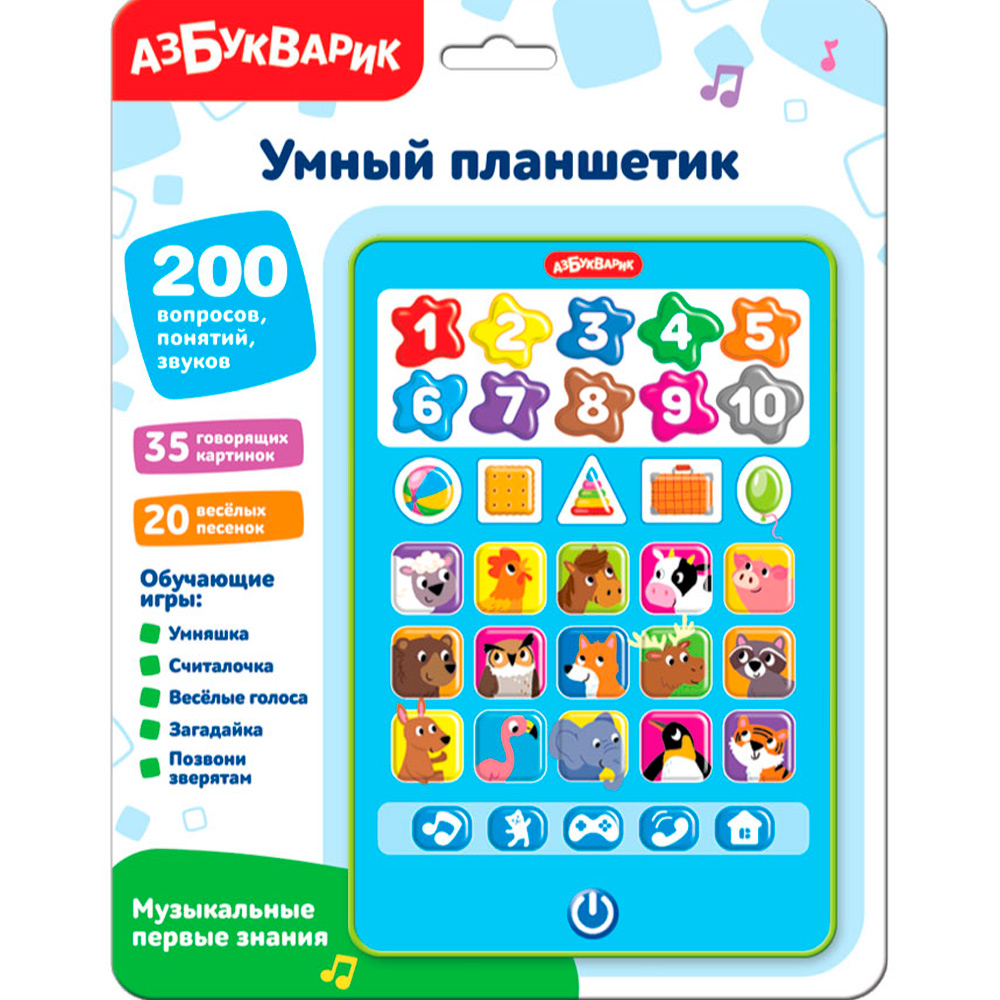 Он содержит веселые мелодии, обучающие функции, яркие картинки.