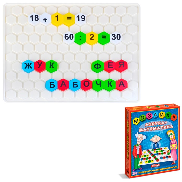 Мозаика азбука+математика - это отличное учебное пособие, которое в игровой форме поможет выучить алфавит, научиться составлять слога и слова, изучить цифры и основные арифметические действия. Игра отлично развивает мелкую моторику ребенка, цветовое восприятие и воображение, усидчивость и концентрацию внимания.