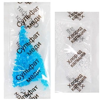 Материал: хлорид кальция, сульфат меди, краситель пищевой, полимеры