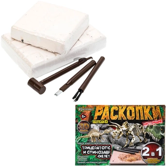Комплектация: брусок гипсовый - 2 шт., скелет - 2 шт., молоток - 1 шт., скребок - 1 шт., кисть - 1 шт., карточка - 2 шт.