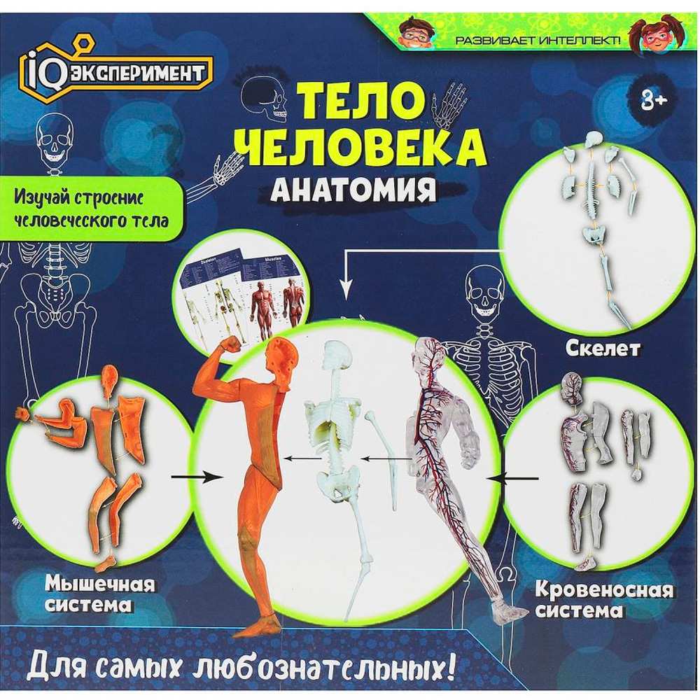 Комплектация: подставка, фигура, детали (кости, органы) - 29 шт., буклет - 2 шт.