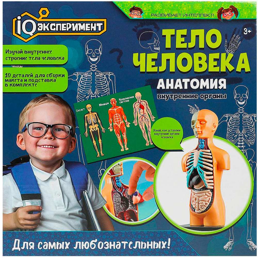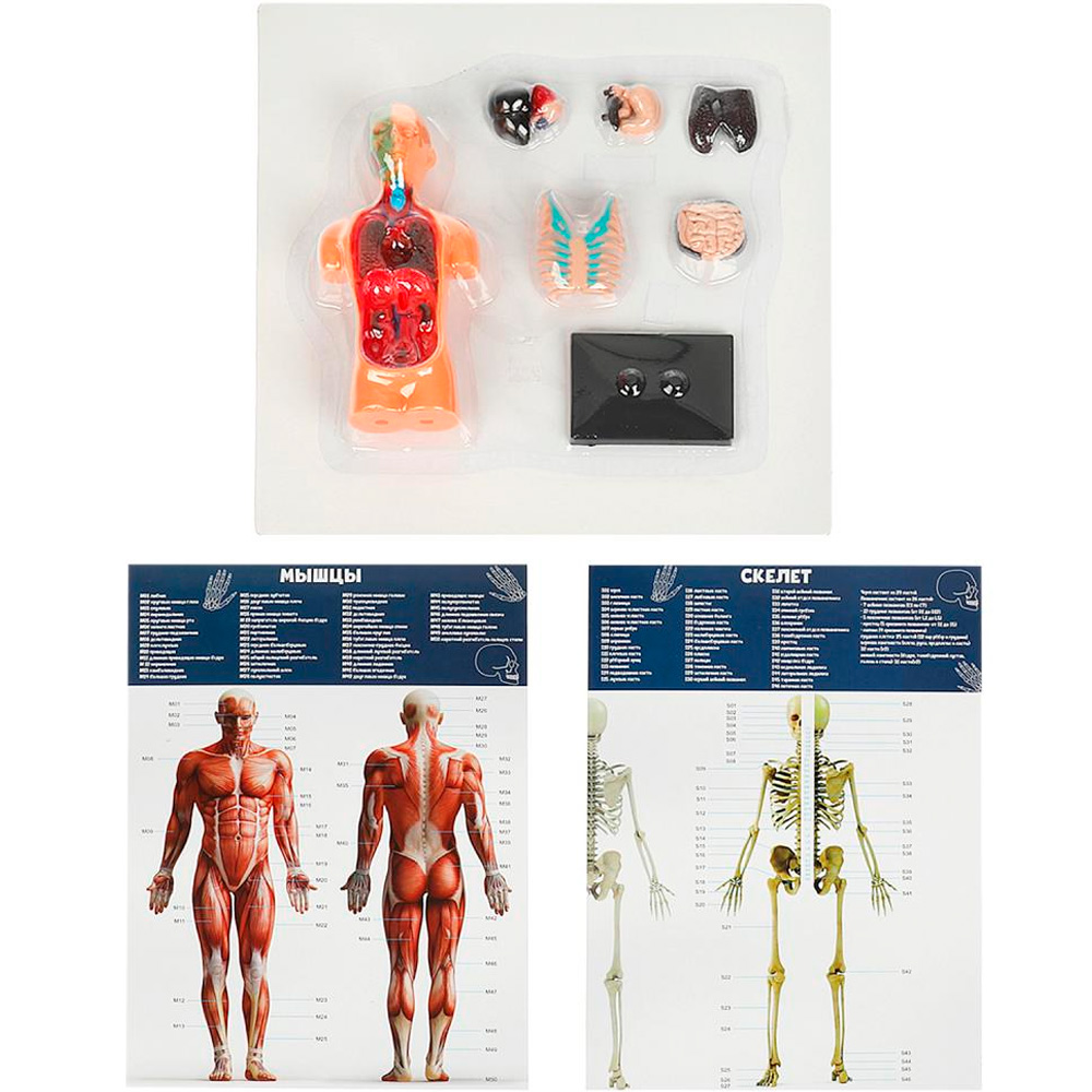 Комплектация: подставка, фигура, детали (кости, органы) - 10 шт., буклет - 2 шт.
