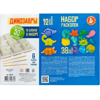 Комплектация: брусок гипсовый - 12 шт., динозавр - 12 шт., морские обитатели - 38 шт., стек - 1 шт.
