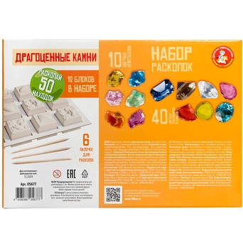 Комплектация: брусок гипсовый - 12 шт., кристалл - 10 шт., бриллиант - 40 шт., стек - 1 шт.