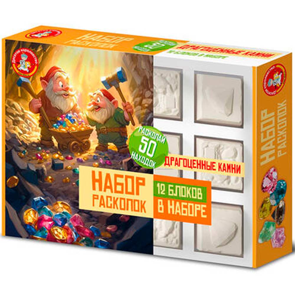 С помощью инструментов, входящих в набор, ребенок сможет снять с бруска слой гипса, откопать драгоценные камни, а остатки гипса удалить щеточкой или при помощи воды.