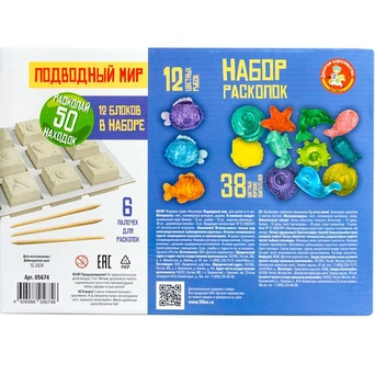 Комплектация: брусок гипсовый - 12 шт., рыбка - 12 шт., морские обитатели - 38 шт., стек - 1 шт.