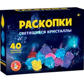 С помощью инструментов, входящих в набор, ребенок сможет снять с бруска слой гипса, откопать светящиеся кристаллы, а остатки гипса удалить щеточкой или при помощи воды.